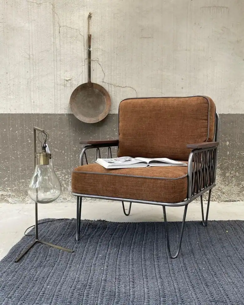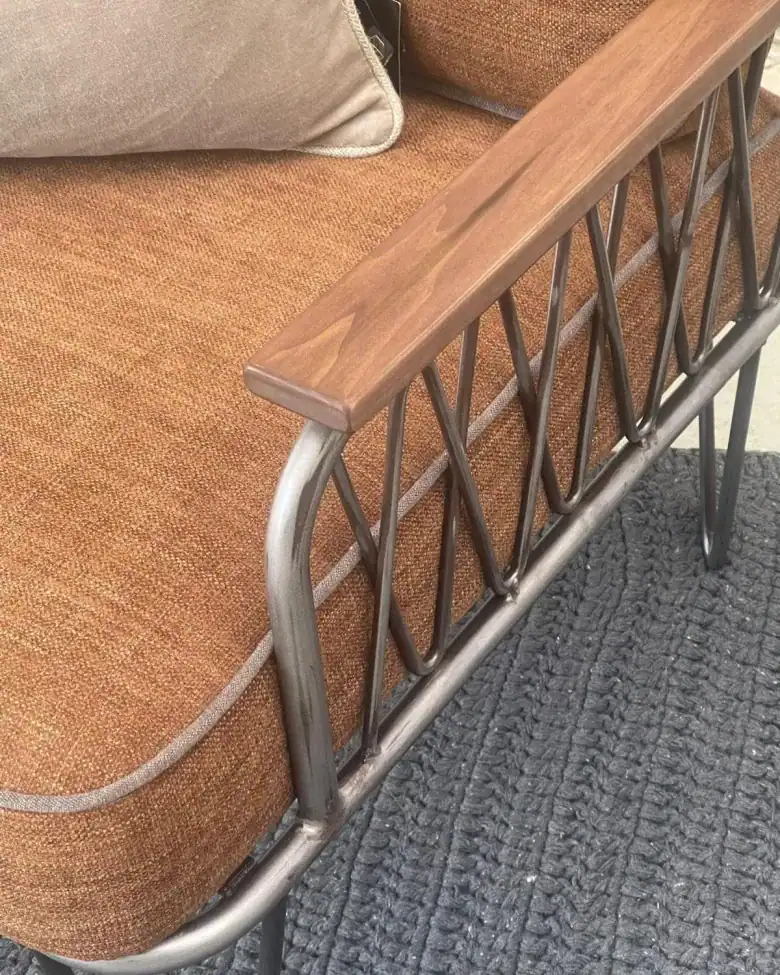 בד קטיפה חום עם קדר אפור. שלד ברזל.
