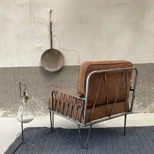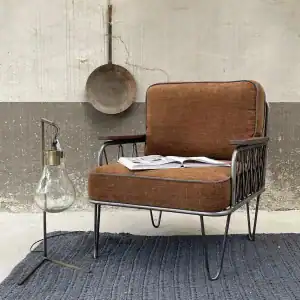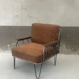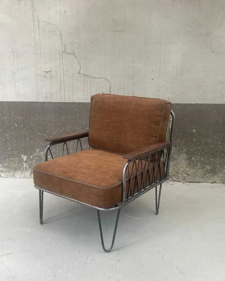 בד קטיפה חום עם קדר אפור. שלד ברזל. ידיות עץ.