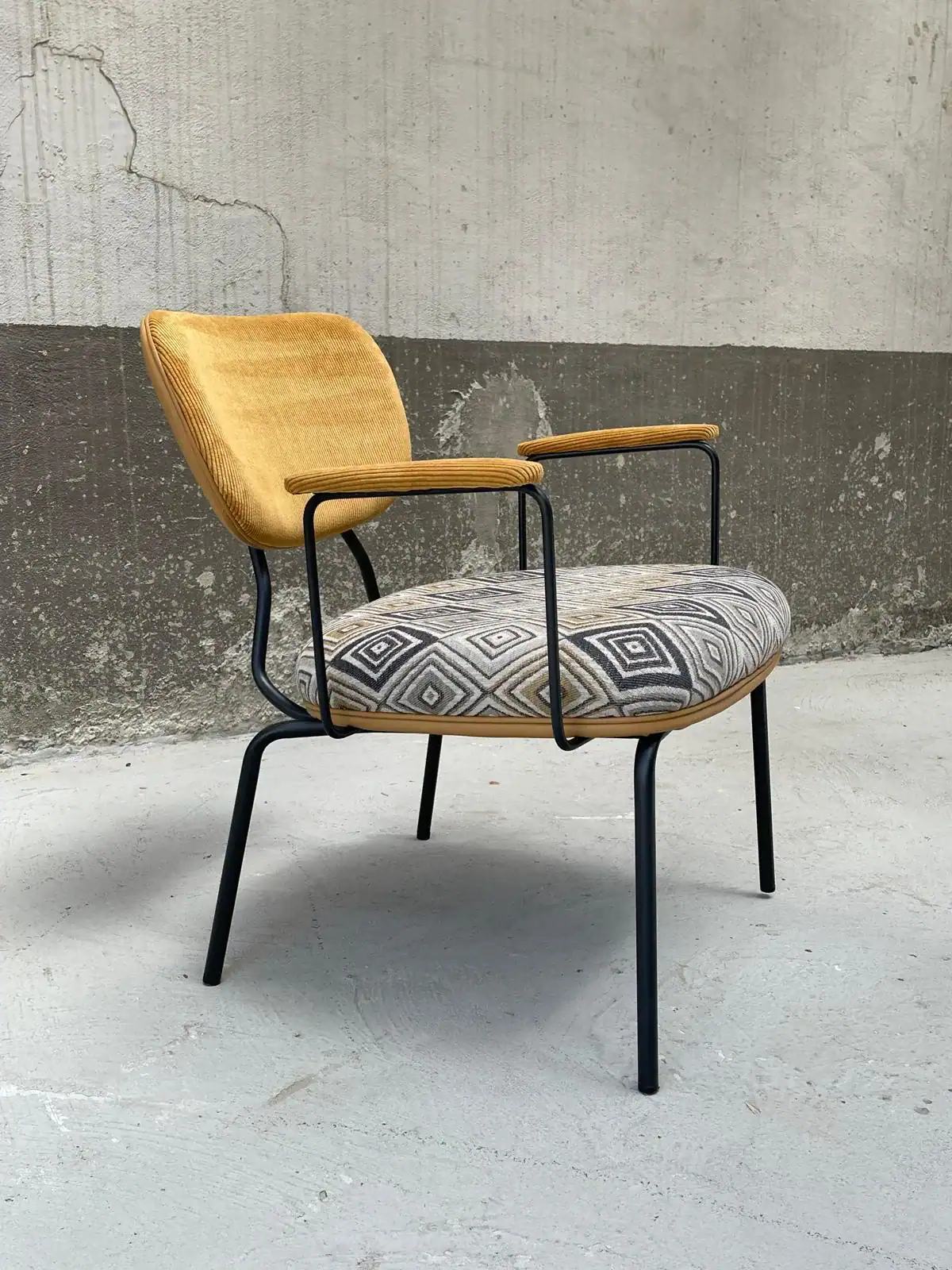 שילוב של בד קורדרוי והדפס. שלד ברזל