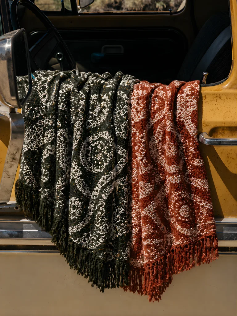 כרית ישיבה ירוקה בדוגמא אתנית.